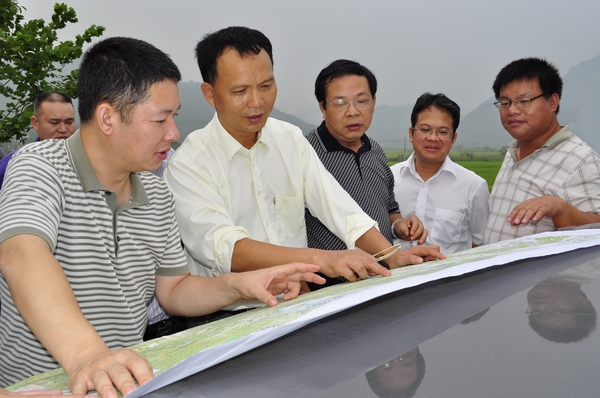 圖一:集團(tuán)公司朱堅(jiān)和董事長(右3)考察來賓至馬山、馬山至平果高速公路項(xiàng)目