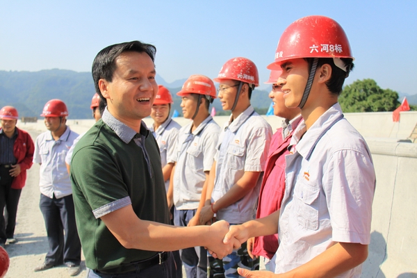 10月17日至19日,集團(tuán)公司副總經(jīng)理劉明洪深入廣西路橋建設(shè)有限公司六河8標(biāo)等在建項(xiàng)目,督導(dǎo)點(diǎn)評項(xiàng)目駐地標(biāo)準(zhǔn)化建設(shè)工作、黨建精神文明建設(shè)工作、創(chuàng)先爭優(yōu)等工作,并親切慰問了一線員工。