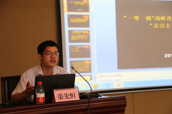 榮博士從戰(zhàn)略?xún)?nèi)涵、歷史緣由、時(shí)代背景、框架思路等方面詳細(xì)解讀和分析了“一帶一路”戰(zhàn)略構(gòu)想,并結(jié)合廣西發(fā)展優(yōu)勢(shì)及集團(tuán)公司發(fā)展需要進(jìn)行了針對(duì)性、科學(xué)性、前瞻性地輔導(dǎo)。榮博士指出,當(dāng)前“一帶一路”戰(zhàn)略的實(shí)施,為中國(guó)企業(yè)“走出去”創(chuàng)造出了難得的歷史機(jī)遇,是中國(guó)未來(lái)10年的重大政策紅利,必將加速中國(guó)企業(yè)“走出去”步伐。新發(fā)展集團(tuán)作為廣西的國(guó)有大型企業(yè),要善于把握新的經(jīng)濟(jì)發(fā)展形勢(shì),主動(dòng)融入“一帶一路”國(guó)家戰(zhàn)略,抓住“一帶一路”建設(shè)新重點(diǎn),利用廣西的先行合作平臺(tái)優(yōu)勢(shì),積極與其他企業(yè)合作“走出去”,以海陸互通重點(diǎn)通道工程為突破,建立靈活機(jī)制,多元化投資,在“一帶一路”大聯(lián)通網(wǎng)絡(luò)建設(shè)中有所作為。