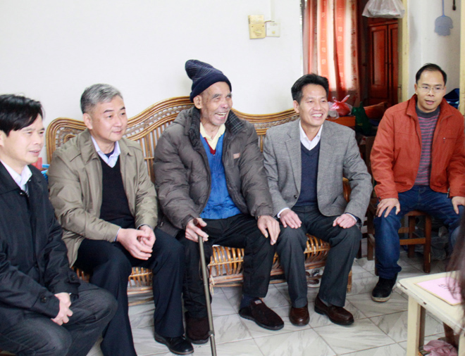 集團公司黨委書記、董事長朱堅和(右二),紀委書記翁科(左二)一行走訪慰問老黨員。