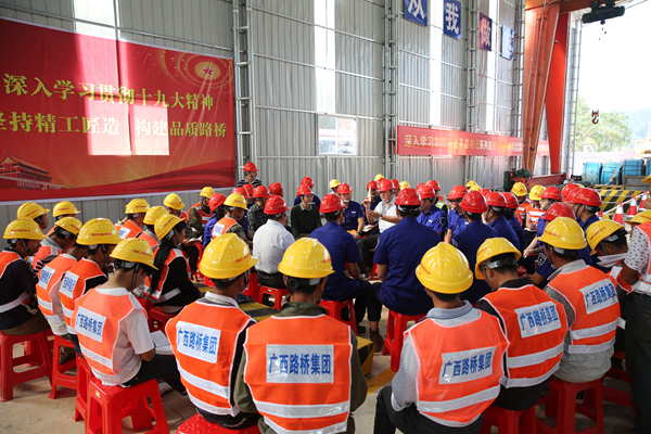 11月3日,自治區(qū)人大常委會(huì)副主任、總工會(huì)主席王躍飛來到集團(tuán)公司基層項(xiàng)目廣西路橋集團(tuán)柳南高改快3標(biāo)宣講黨的十九大會(huì)議精神。自治區(qū)總工會(huì)黨組書記、副主席侯線紅,自治區(qū)總工會(huì)巡視員陳湘文,自治區(qū)直屬企事業(yè)工會(huì)常務(wù)副主任馬寧,集團(tuán)公司黨委副書記、工會(huì)主席張友坐,廣西路橋集團(tuán)黨委副書記、副董事長、工會(huì)主席曹文海等隨同。