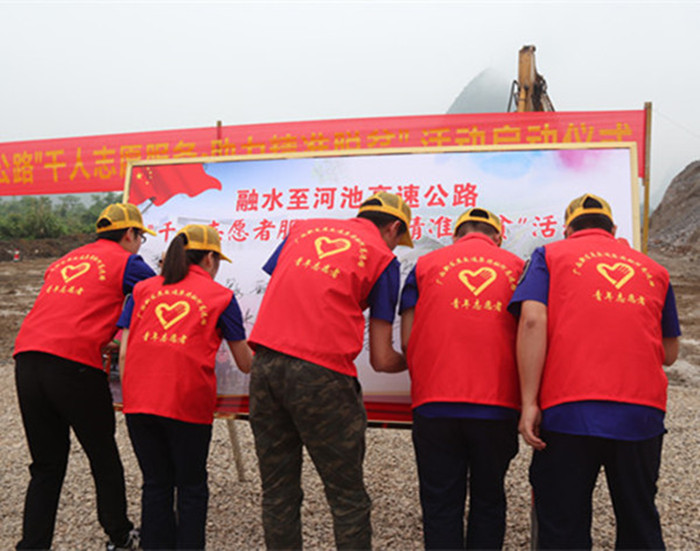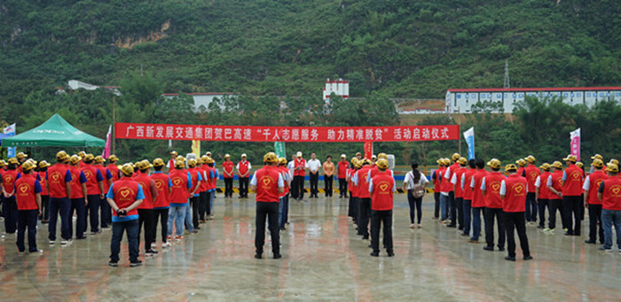新恒通公司黨委書記、董事長賴水平介紹,集團公司所建設的賀州至巴馬、融水至河池高速公路是廣西縣縣通高速公路重點工程,沿線大部分縣區(qū)仍屬貧窮縣。為響應中央精準扶貧和建設美麗中國的號召,擔負起國企的社會責任,新恒通公司組織全線參建單位成立青年志愿者服務隊,結合項目實際,從2018年1月至2020年12月在賀巴、融河等高速公路全線范圍內開展為期三年的“千人志愿服務,助力精準脫貧”活動。