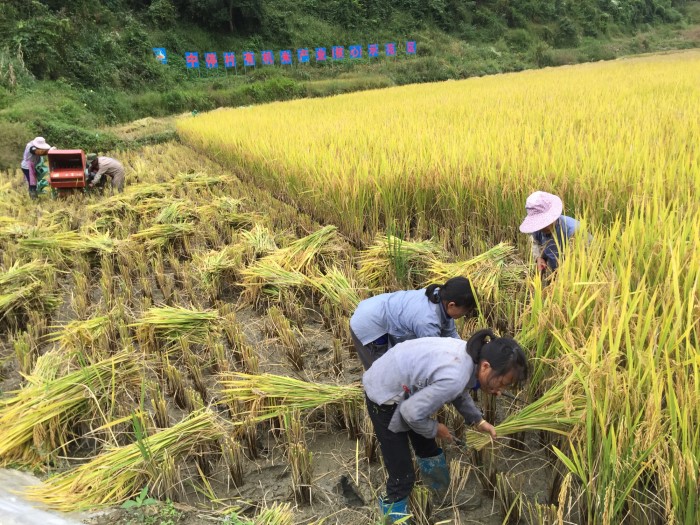 金秋十月,魚米飄香。10月份以來(lái),在廣西新發(fā)展交通集團(tuán)扶貧聯(lián)系點(diǎn)樂業(yè)縣邏西鄉(xiāng)中停村稻魚生態(tài)綜合有機(jī)米種植示范基地里,村民們正在收獲豐收的喜悅。