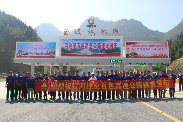 路騰龍飛騁八桂,齊驅(qū)并舞慶誕辰。11月28日,新發(fā)展交通集團(tuán)參加勘察設(shè)計(jì)、施工的吳圩機(jī)場(chǎng)至大塘高速公路、河池至百色高速公路正式通車(chē),企業(yè)豐碑再添功績(jī)。