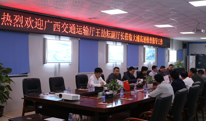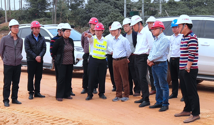 12月23日下午,區(qū)交通運輸廳副廳長王劼耘一行到大塘至浦北高速公路項目開展項目建設(shè)檢查指導(dǎo)。自治區(qū)交通運輸廳建設(shè)管理處副處長余建國、北投集團總工程師覃炳賢、欽州市交通局局長鄒滿麗、靈山縣副縣長陸漢川、新發(fā)展集團總經(jīng)理藍日彥、大浦公司副總經(jīng)理姚雷、中建八局南方公司總經(jīng)理助理龍永強等陪同。